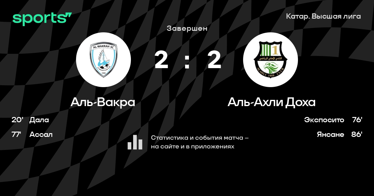 | 4 | Аль-Ахли Доха | 22 | 10 | 5 | 7 | 38 | 39 | -1 | 35 | ||