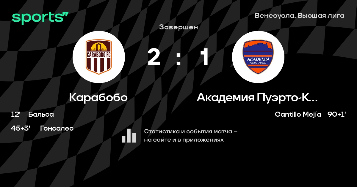 Карабобо – Академия Пуэрто-Кабельо: Академия Пуэрто-Кабельо не проигрывает в 7 из 9 последних матчей против этого соперника в гостях
