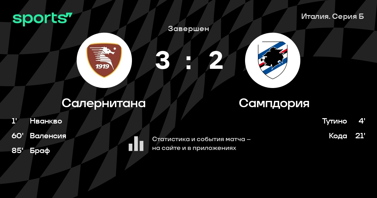 Результат прошлой игры в турнире «Серия B»: Сампдория – Реджана 0:1. Сампдория не может выиграть в 3 последних матчах в рамках турнира «Серия B». Сампдория пропускает в 4 последних матчах в турнире «Серия B». В последних 5 играх Сампдория забивает 7 голов. В последних 5 играх Сампдория пропускает 5 голов.