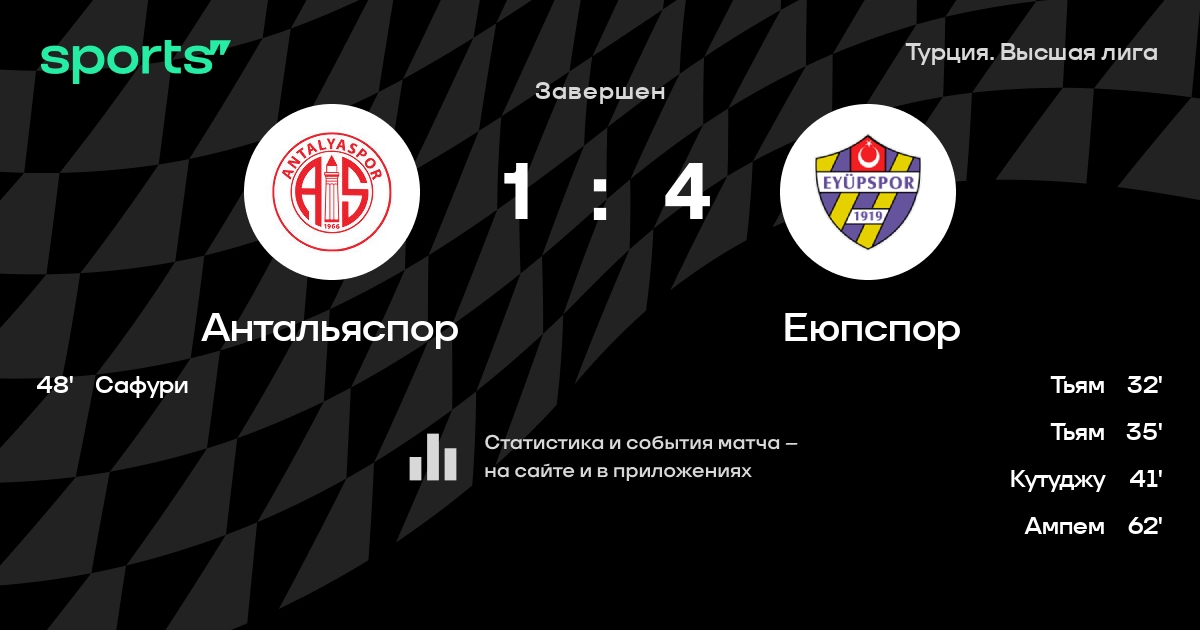 | 15 | Антальяспор | 36 | -25 | 44 |
