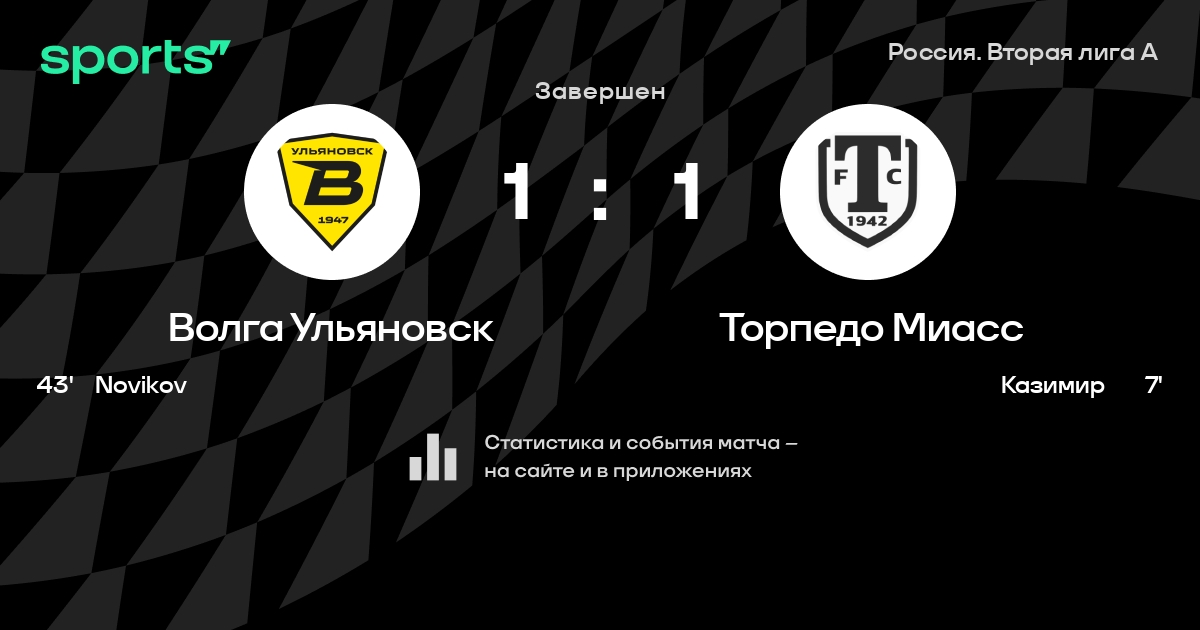 Волга Ульяновск – Торпедо Миасс: коэффициенты