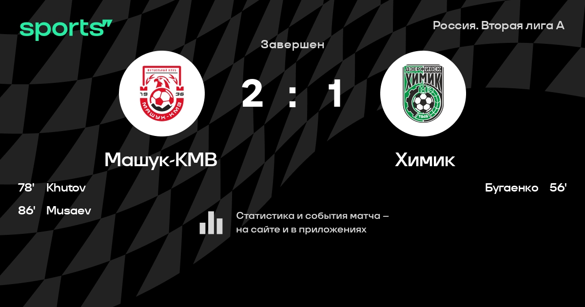 Результат прошлой игры в турнире «Россия. Вторая лига А»: Торпедо Миасс – Машук-КМВ 1:0. После 8 туров Машук-КМВ набирает 11 очков и занимает 5 место в турнире. Лучший бомбардир команды – Руслан Суанов: он забил 3 в 7 матчах. Машук-КМВ не может выиграть в 4 последних матчах в рамках турнира «Россия. Вторая лига А». Машук-КМВ пропускает в 4 последних матчах в турнире «Россия. Вторая лига А». В последних 5 играх Машук-КМВ забивает 5 голов. В последних 5 играх Машук-КМВ пропускает 5 голов.