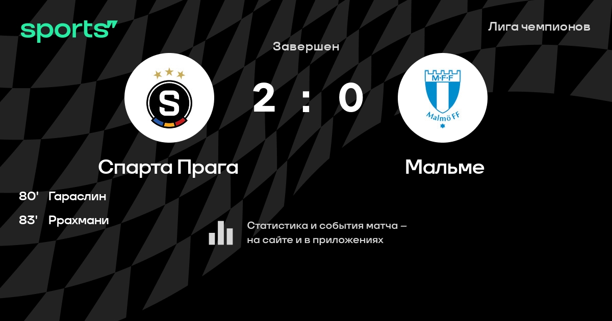 Результат прошлой игры в турнире «Лига чемпионов»: Мальме – Спарта Прага 0:2. Спарта Прага не проигрывает в 5 последних матчах в рамках турнира «Лига чемпионов». В 5 последних матчах в турнире «Лига чемпионов» Спарта Прага обязательно забивает. В последних 5 играх Спарта Прага забивает 11 голов. В последних 5 играх Спарта Прага пропускает 6 голов.