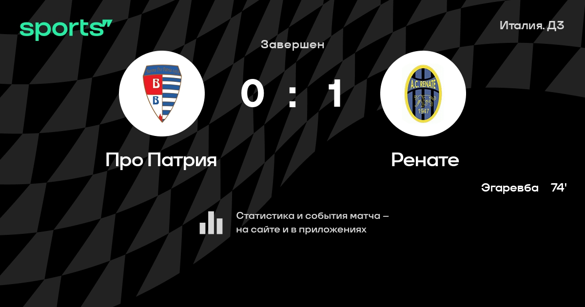 Результат прошлой игры в турнире «Серия С»: Про Сесто – Про Патрия 1:0. Про Патрия пропускает в 7 последних матчах в турнире «Серия С». В последних 5 играх Про Патрия забивает 4 голов. В последних 5 играх Про Патрия пропускает 5 голов.
