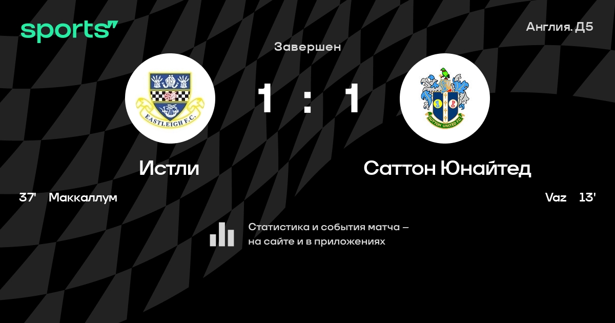 Результат прошлой игры в турнире «Д5. Национальная лига»: Саттон Юнайтед – Йорк Сити 2:2. После 4 туров Саттон Юнайтед набирает 8 очков и занимает 4 место в турнире. Лучший бомбардир команды – Джош Коли: он забил 2 в 3 матчах. Саттон Юнайтед не проигрывает в 4 последних матчах в рамках турнира «Д5. Национальная лига». В 4 последних матчах в турнире «Д5. Национальная лига» Саттон Юнайтед обязательно забивает. В последних 5 играх Саттон Юнайтед забивает 12 голов. В последних 5 играх Саттон Юнайтед пропускает 3 голов.