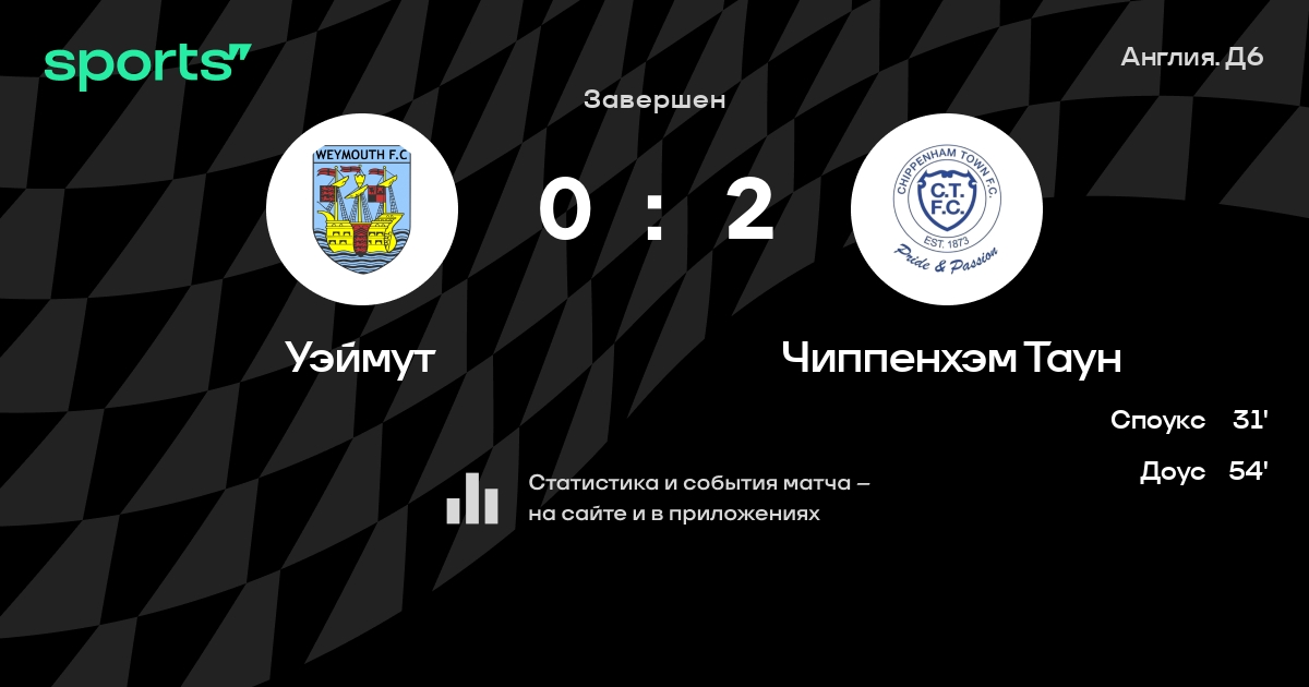 Результат прошлой игры в турнире «Д6. Национальная конференция»: Уэймут – Хемел Хемпстед Таун 0:2. Уэймут проигрывает в 3 последних матчах в рамках турнира «Д6. Национальная конференция». Уэймут пропускает в 3 последних матчах в турнире «Д6. Национальная конференция». В последних 5 играх Уэймут забивает 5 голов. В последних 5 играх Уэймут пропускает 9 голов.