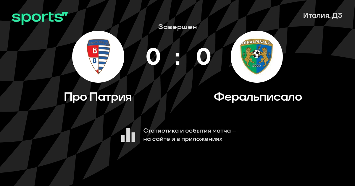 Результат прошлой игры в турнире «Серия С»: Джана Эрминио – Про Патрия 1:1. Про Патрия не может выиграть в 4 последних матчах в рамках турнира «Серия С». Про Патрия пропускает в 9 последних матчах в турнире «Серия С». В последних 5 играх Про Патрия забивает 2 голов. В последних 5 играх Про Патрия пропускает 3 голов.
