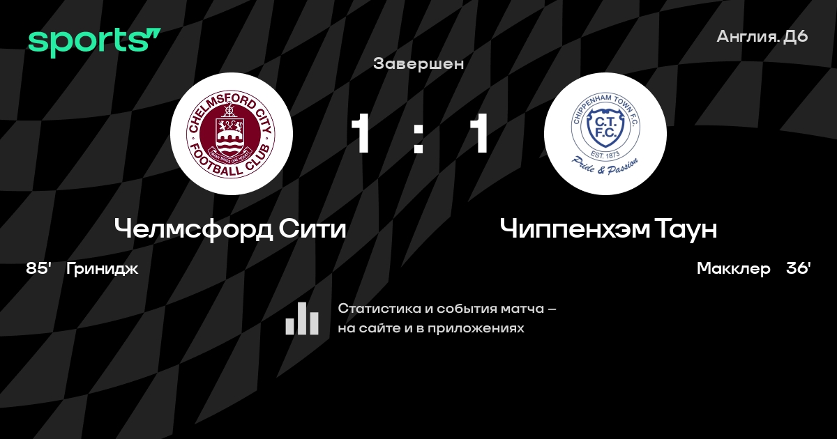 Результат прошлой игры в турнире «Д6. Национальная конференция»: Чиппенхэм Таун – Мэйдстон Юнайтед 0:0. После 4 туров Чиппенхэм Таун набирает 4 очков и занимает 17 место в турнире. Лучший бомбардир команды – Том Оуэн-Эванс: он забил 1 в 2 матчах. В последних 5 играх Чиппенхэм Таун забивает 3 голов. В последних 5 играх Чиппенхэм Таун пропускает 3 голов.
