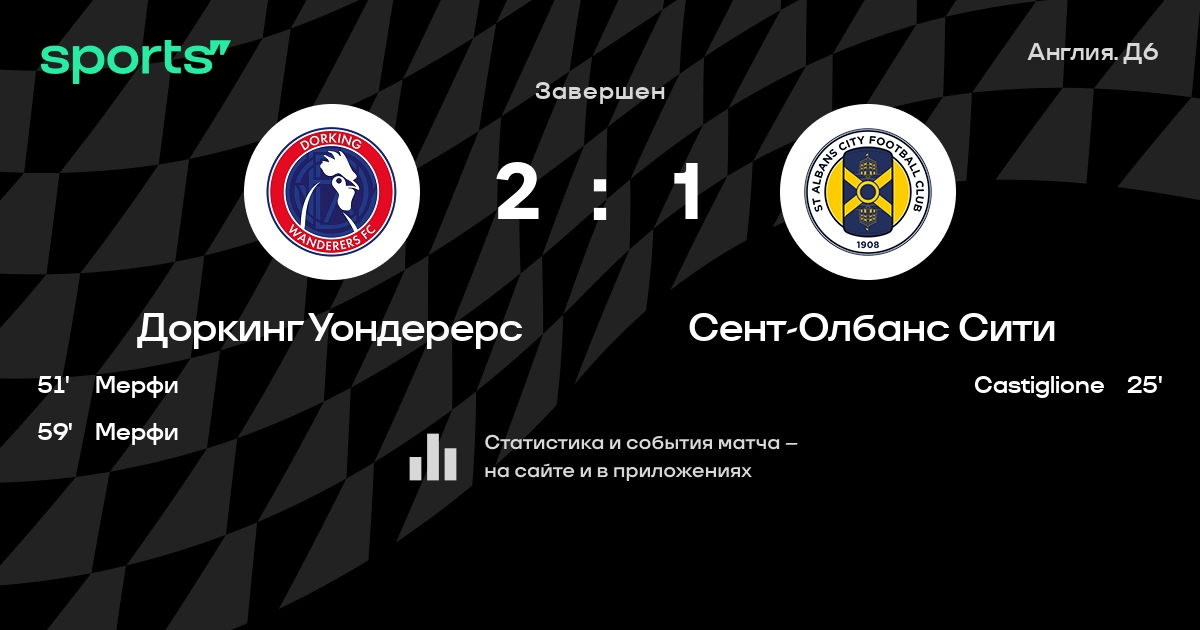 Результат прошлой игры в турнире «Д6. Национальная конференция»: Торки Юнайтед – Доркинг Уондерерс 1:0. После 4 туров Доркинг Уондерерс набирает 7 очков и занимает 7 место в турнире. Лучший бомбардир команды – J. Prior: он забил 2 в 2 матчах. В последних 5 играх Доркинг Уондерерс забивает 8 голов. В последних 5 играх Доркинг Уондерерс пропускает 8 голов.