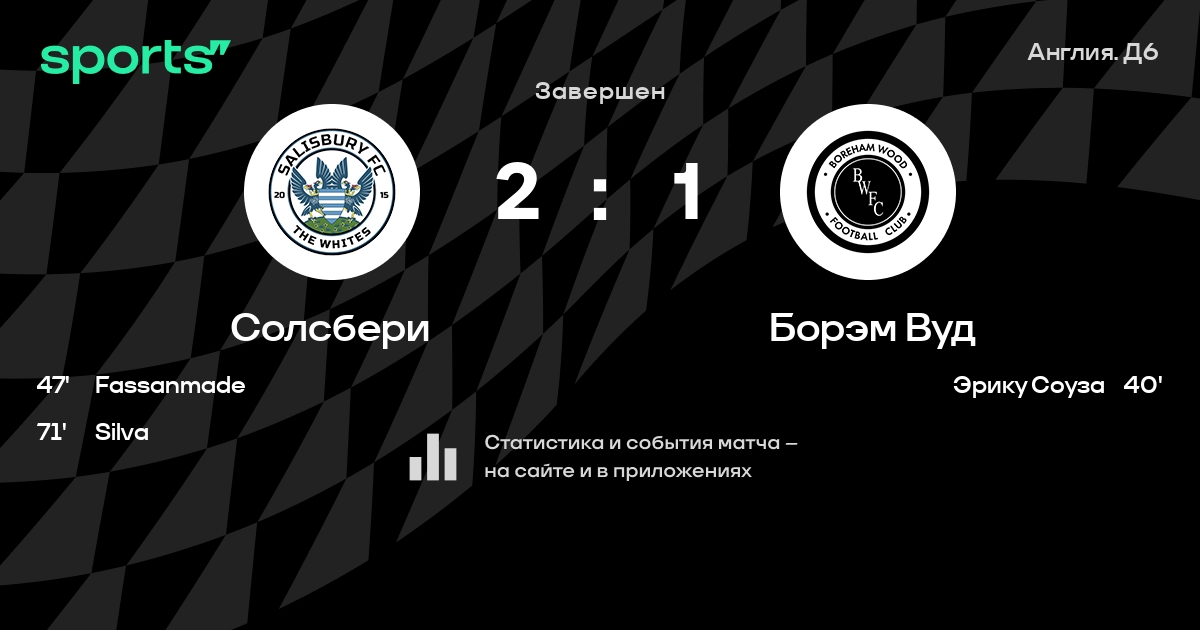 Результат прошлой игры в турнире «Д6. Национальная конференция»: Хэмптон энд Ричмонд – Солсбери 1:0. После 4 туров Солсбери набирает 5 очков и занимает 14 место в турнире. Лучший бомбардир команды – J. Hedges: он забил 2 в 2 матчах. В последних 5 играх Солсбери забивает 6 голов. В последних 5 играх Солсбери пропускает 7 голов.