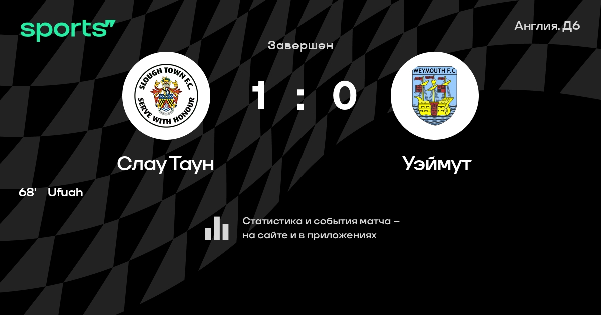 Результат прошлой игры в турнире «Д6. Национальная конференция»: Эйвли – Слау Таун 0:3. После 5 туров Слау Таун набирает 12 очков и занимает 1 место в турнире. Лучший бомбардир команды – Слави Спасов: он забил 4 в 4 матчах. Слау Таун побеждает в 3 последних матчах в рамках турнира «Д6. Национальная конференция». В 3 последних матчах в турнире «Д6. Национальная конференция» Слау Таун обязательно забивает. Слау Таун больше всех забивает в турнире – 13 в 5. В последних 5 играх Слау Таун забивает 13 голов. В последних 5 играх Слау Таун пропускает 4 голов.