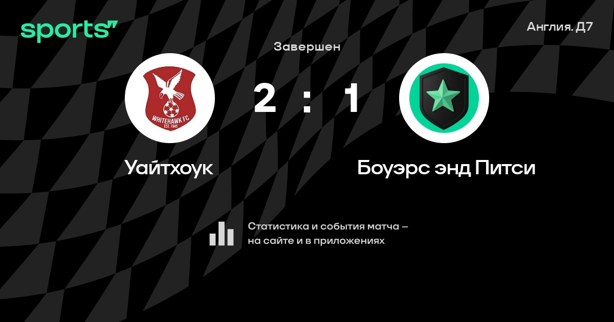 Результат прошлой игры в турнире «Д7. Нон-лиг Премьер-лига»: Далвич Хэмлет – Уайтхоук 3:3. После 3 туров Уайтхоук набирает 1 очков и занимает 21 место в турнире. Уайтхоук не может выиграть в 3 последних матчах в рамках турнира «Д7. Нон-лиг Премьер-лига». Уайтхоук пропускает в 4 последних матчах в турнире «Д7. Нон-лиг Премьер-лига». В последних 5 играх Уайтхоук забивает 9 голов. В последних 5 играх Уайтхоук пропускает 13 голов.
