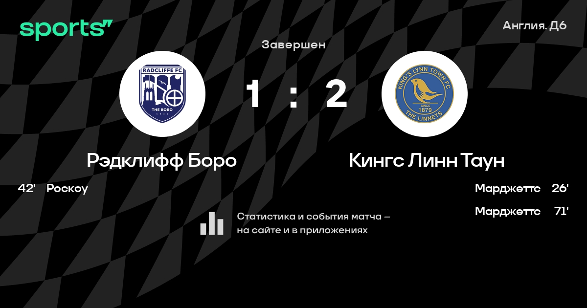 Результат прошлой игры в турнире «Д6. Национальная конференция»: Кингс Линн Таун – Питерборо Спортс 1:2. После 5 туров Кингс Линн Таун набирает 9 очков и занимает 8 место в турнире. Лучший бомбардир команды – Голд Омотайо: он забил 3 в 4 матчах. В 3 последних матчах в турнире «Д6. Национальная конференция» Кингс Линн Таун обязательно забивает. В последних 5 играх Кингс Линн Таун забивает 7 голов. В последних 5 играх Кингс Линн Таун пропускает 7 голов.