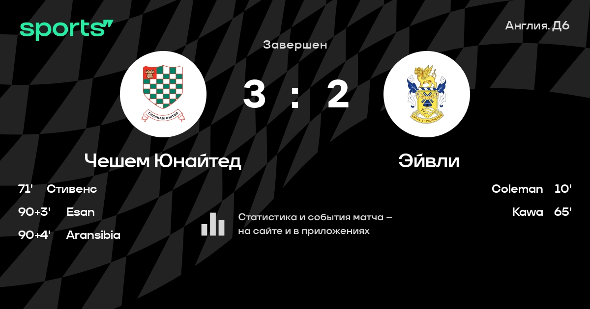 Результат прошлой игры в турнире «Д6. Национальная конференция»: Солсбери – Чешем Юнайтед 1:2. После 7 туров Чешем Юнайтед набирает 10 очков и занимает 12 место в турнире. Лучший бомбардир команды – N. Minhas: он забил 4 в 5 матчах. В 7 последних матчах в турнире «Д6. Национальная конференция» Чешем Юнайтед обязательно забивает. Чешем Юнайтед пропускает в 7 последних матчах в турнире «Д6. Национальная конференция». В последних 5 играх Чешем Юнайтед забивает 10 голов. В последних 5 играх Чешем Юнайтед пропускает 8 голов.