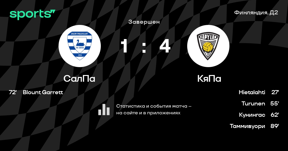 Aleksi Piispa - Паси, Niko Nurmi, Кауппила, Joel Huovinen, Pekka Hietalahti - Кунингас, Adam Jouhi - Yllson Lika, Turunen, Elias KallioЗапасные: Hautamo, Pulkkinen, Толонен, Lönnqvist, Valakari, Таммивуори, Heikkinen