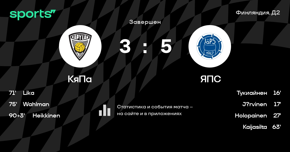Hautamo - Паси, Joel Huovinen, Pontus Lindberg, Салми - Толонен, Wahlman, Lönnqvist, Toivo Valakari, Таммивуори - Benjamin HeikkinenЗапасные: Piispa, Кауппила, Nurmi, Pulkkinen, Jouhi, Ripatti, Lika
