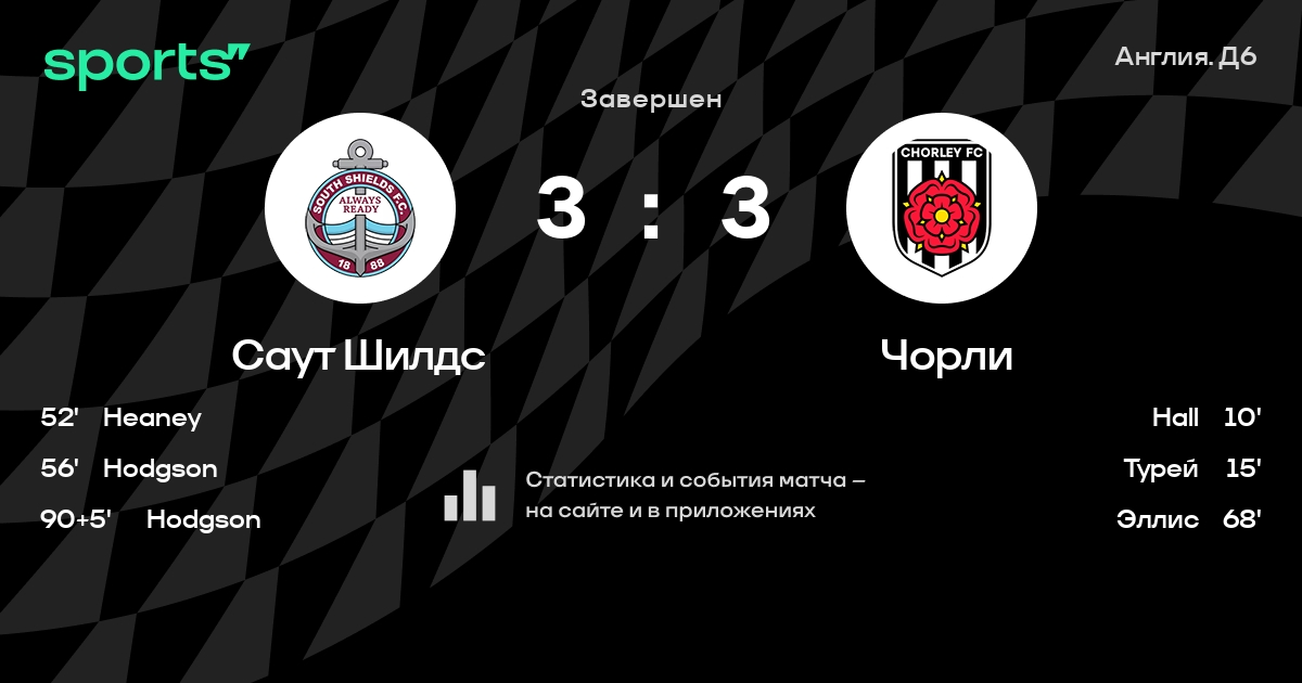 Результат прошлой игры в турнире «Д6. Национальная конференция»: Честер – Саут Шилдс 1:0. После 8 туров Саут Шилдс набирает 12 очков и занимает 12 место в турнире. Лучший бомбардир команды – P. Blackett: он забил 3 в 7 матчах. В последних 5 играх Саут Шилдс забивает 3 голов. В последних 5 играх Саут Шилдс пропускает 9 голов.