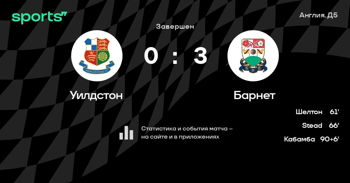 Результат прошлой игры в турнире «Д5. Национальная лига»: Форест Грин – Уилдстон 2:2. После 9 туров Уилдстон набирает 6 очков и занимает 22 место в турнире. Лучший бомбардир команды – C. McFarlane: он забил 2 в 4 матчах. Уилдстон не может выиграть в 4 последних матчах в рамках турнира «Д5. Национальная лига». Барнет имеет в активе больше всех побед в турнире – 6. Уилдстон пропускает в 4 последних матчах в турнире «Д5. Национальная лига». В последних 5 играх Уилдстон забивает 4 голов. В последних 5 играх Уилдстон пропускает 6 голов.