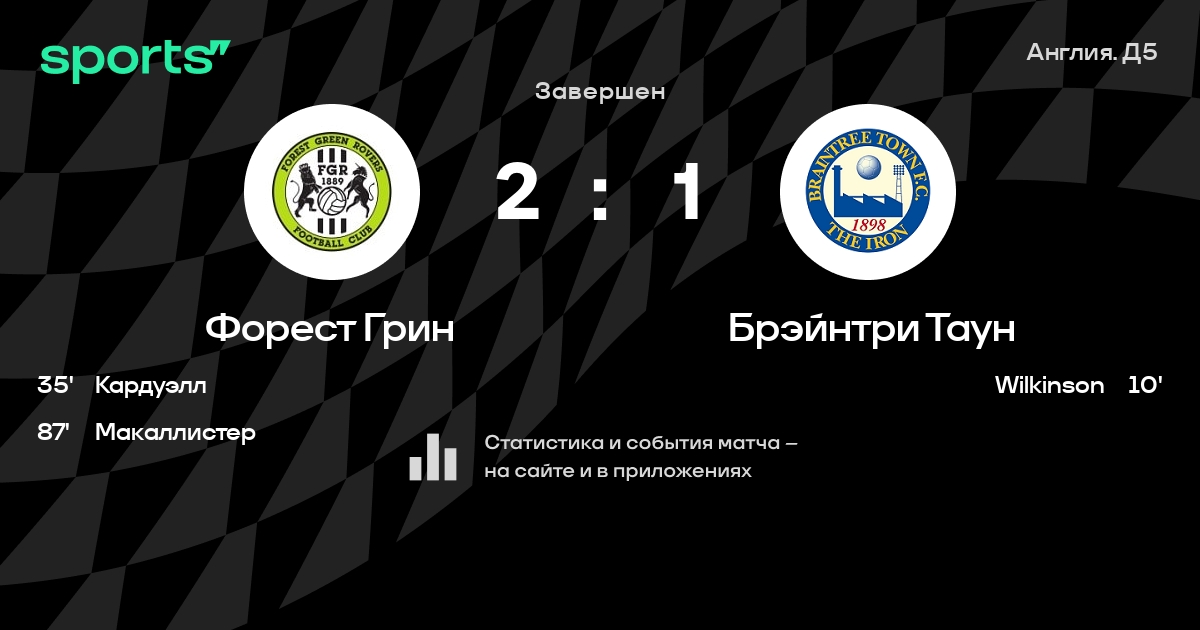 Результат прошлой игры в турнире «Д5. Национальная лига»: Истли – Форест Грин 1:3. После 13 туров Форест Грин набирает 27 очков и занимает 2 место в турнире. Лучший бомбардир команды – Кристиан Дойдж: он забил 7 в 13 матчах. В последних 5 играх Форест Грин забивает 8 голов. В последних 5 играх Форест Грин пропускает 2 голов.