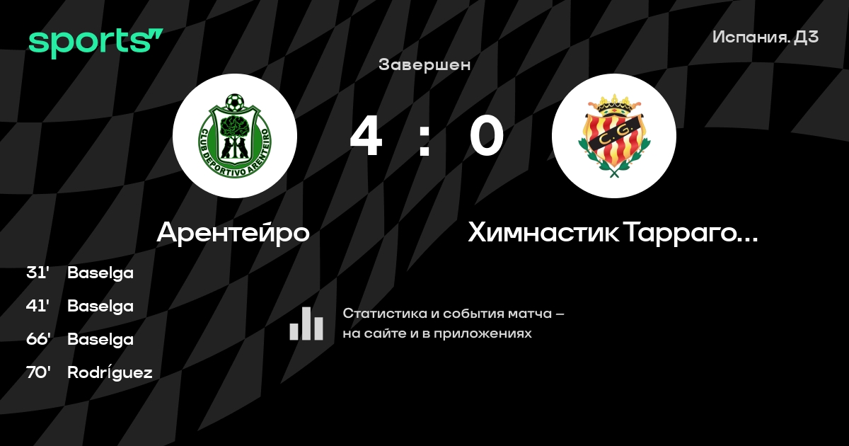 Результат прошлой игры в турнире «Первый дивизион RFEF»: Баракальдо – Арентейро 2:0. После 7 туров Арентейро набирает 10 очков и занимает 9 место в турнире. Лучший бомбардир команды – Marcos Baselga García: он забил 2 в 1 матчах. В последних 5 играх Арентейро забивает 5 голов. В последних 5 играх Арентейро пропускает 3 голов.