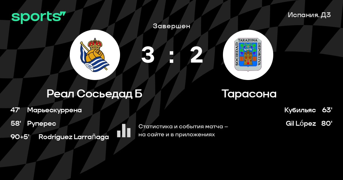 Трансляция Реал Сосьедад Б - Тарасона