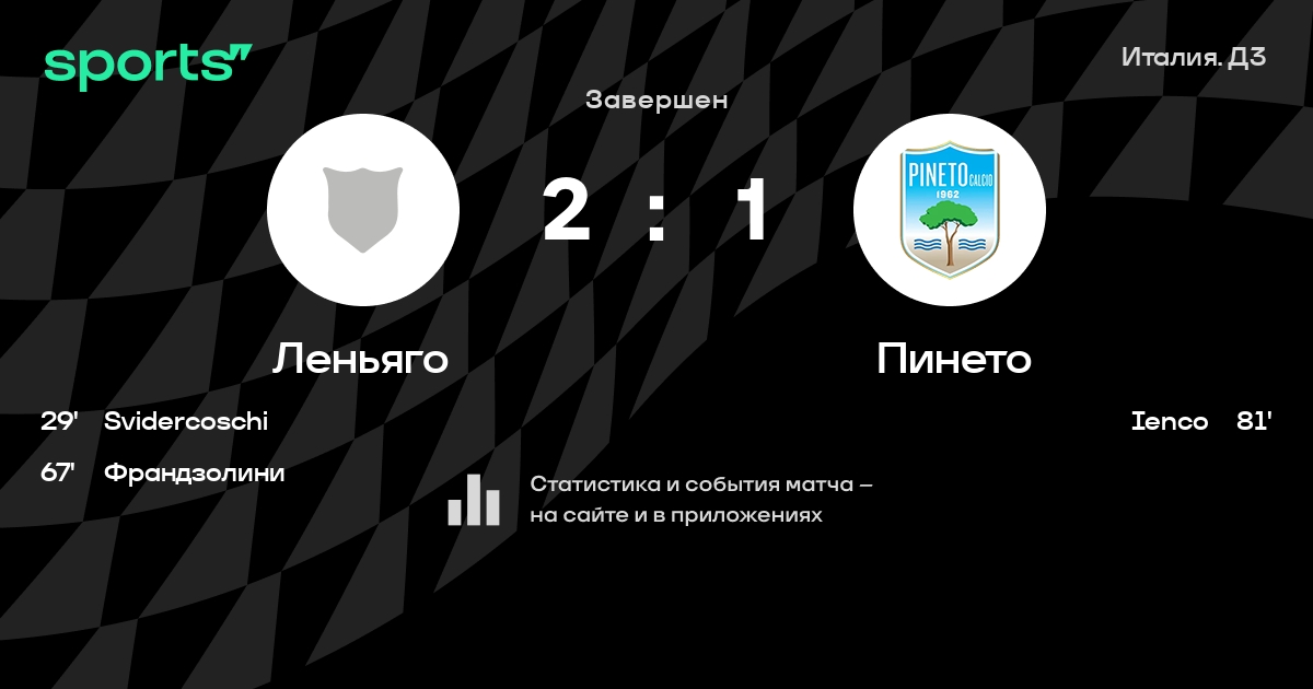 Результат прошлой игры в турнире «Серия С»: Тернана – Леньяго 8:0. После 6 туров Леньяго набирает 0 очков и занимает 20 место в турнире. Лучший бомбардир команды – S. Svidercoschi: он забил 1 в 5 матчах. Леньяго проигрывает в 6 последних матчах в рамках турнира «Серия С». В 5 последних матчах в турнире «Серия С» Леньяго обязательно забивает. Леньяго пропускает в 7 последних матчах в турнире «Серия С». В последних 5 играх Леньяго забивает 0 голов. В последних 5 играх Леньяго пропускает 15 голов.