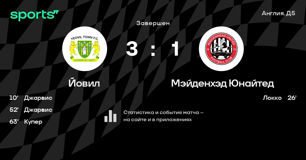 Результат прошлой игры в турнире «Д5. Национальная лига»: Мэйденхэд Юнайтед – Олдхэм 2:2. После 15 туров Мэйденхэд Юнайтед набирает 16 очков и занимает 18 место в турнире. Лучший бомбардир команды – R. Smith: он забил 4 в 17 матчах. Мэйденхэд Юнайтед не проигрывает в 5 последних матчах в рамках турнира «Д5. Национальная лига». В 5 последних матчах в турнире «Д5. Национальная лига» Мэйденхэд Юнайтед обязательно забивает. В последних 5 играх Мэйденхэд Юнайтед забивает 9 голов. В последних 5 играх Мэйденхэд Юнайтед пропускает 4 голов.