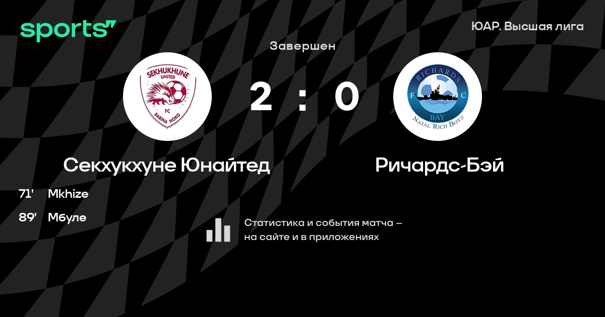 Результат прошлой игры в турнире «Премьер-лига»: Роял АМ – Секхукхуне Юнайтед 2:0. В последних 5 играх Секхукхуне Юнайтед забивает 5 голов. В последних 5 играх Секхукхуне Юнайтед пропускает 5 голов.