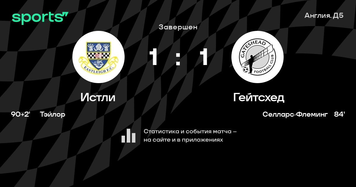 Истли – Гейтсхед: Истли забивает в 6 из 8 последних матчей против этого соперника