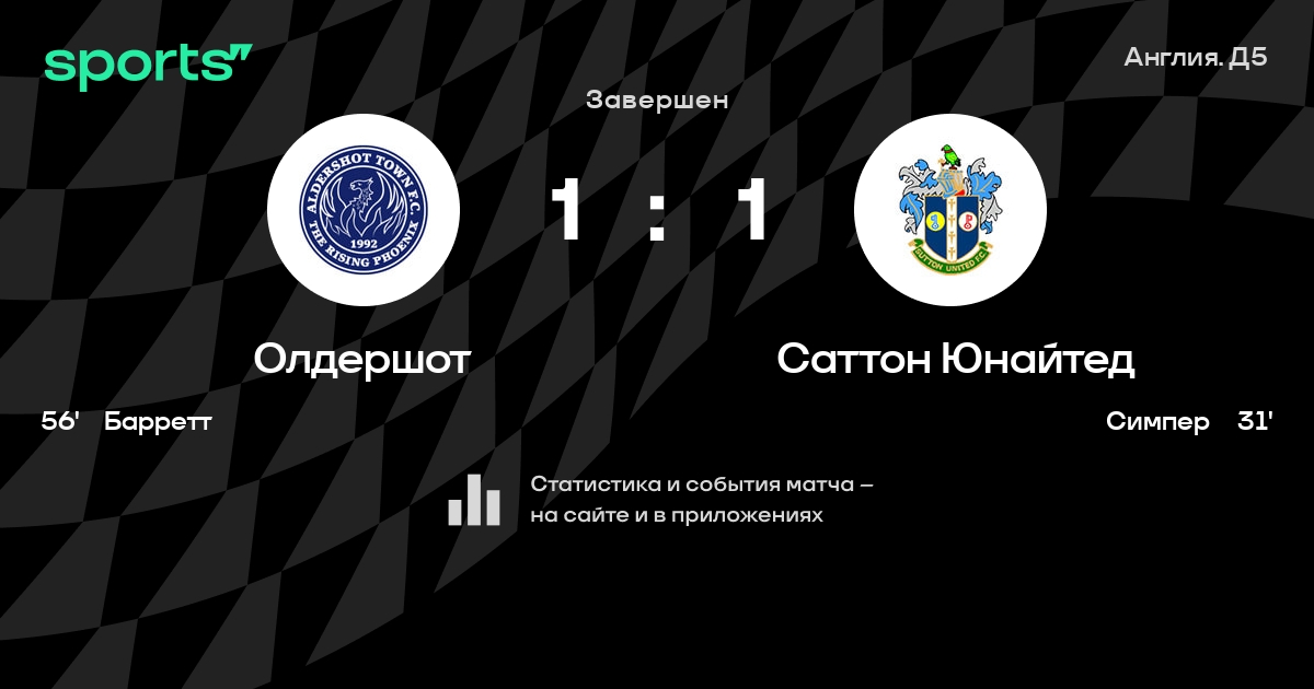 Олдершот – Саттон Юнайтед: Саттон Юнайтед не проигрывает в 5 последних матчах против этого соперника в турнире «Д5. Национальная лига»