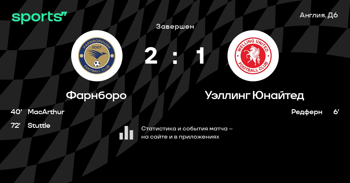 Фарнборо – Уэллинг Юнайтед: коэффициенты