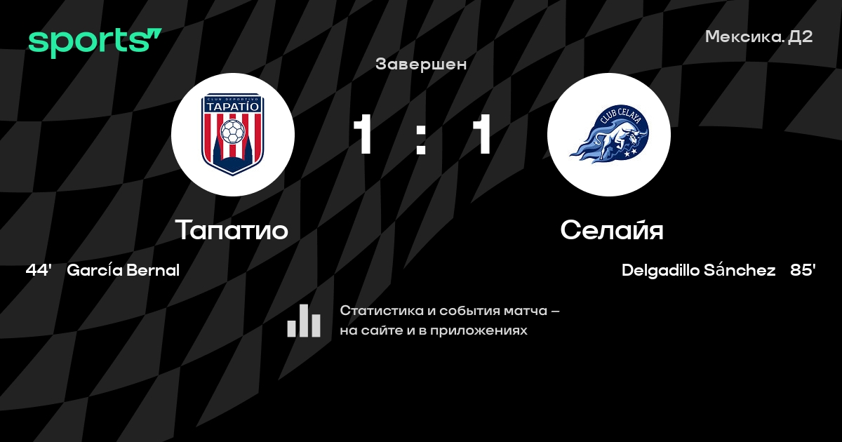 Результат прошлой игры в турнире «Первая лига»: Коррекаминос – Тапатио 0:3. После 13 туров Тапатио набирает 28 очков и занимает 1 место в турнире. Лучший бомбардир команды – T. Wilke: он забил 7 в 13 матчах. Тапатио не проигрывает в 6 последних матчах в рамках турнира «Первая лига». Тапатио имеет в активе больше всех побед в турнире – 8. Тапатио имеет лучшую разницу мячей в турнире – 18. В 14 последних матчах в турнире «Первая лига» Тапатио обязательно забивает. Тапатио больше всех забивает в турнире – 31 в 13. В последних 5 играх Тапатио забивает 11 голов. В последних 5 играх Тапатио пропускает 5 голов.