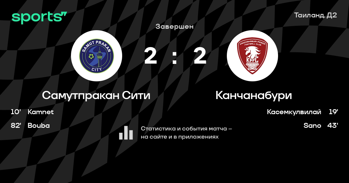 Результат прошлой игры в турнире «Лига 2»: Kanchanaburi Power – Супханбури 1:0. После 10 туров Kanchanaburi Power набирает 14 очков и занимает 7 место в турнире. Лучший бомбардир команды – Тхан Пайн: он забил 4 в 9 матчах. В последних 5 играх Kanchanaburi Power забивает 9 голов. В последних 5 играх Kanchanaburi Power пропускает 3 голов.