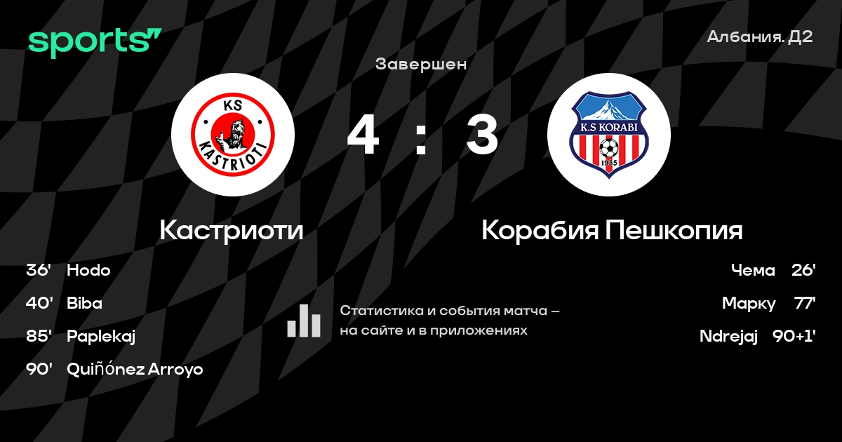 Результат прошлой игры в турнире «Первая лига»: Valbona – Кастриоти 0:0. После 10 туров Кастриоти набирает 14 очков и занимает 5 место в турнире. Лучший бомбардир команды – Спартак Аязи: он забил 4 в 9 матчах. В последних 5 играх Кастриоти забивает 4 голов. В последних 5 играх Кастриоти пропускает 4 голов.