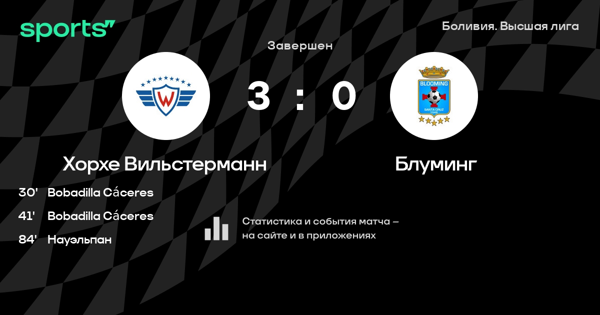 Результат прошлой игры в турнире «Примера»: Хорхе Вильстерманн – Реал Санта-Крус 2:0. После 16 туров Хорхе Вильстерманн набирает 24 очков и занимает 8 место в турнире. Лучший бомбардир команды – Ариэль Науэльпан: он забил 11 в 26 матчах. Хорхе Вильстерманн не проигрывает в 6 последних матчах в рамках турнира «Примера». В 3 последних матчах в турнире «Примера» Хорхе Вильстерманн обязательно забивает. В последних 5 играх Хорхе Вильстерманн забивает 8 голов. В последних 5 играх Хорхе Вильстерманн пропускает 3 голов.