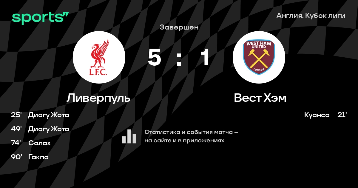 В последних 5 играх Ливерпуль забивает 11 голов. В последних 5 играх Ливерпуль пропускает 2 голов.