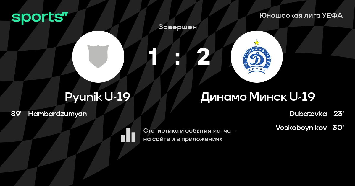 Трансляция Pyunik U19 - Динамо Минск U-19