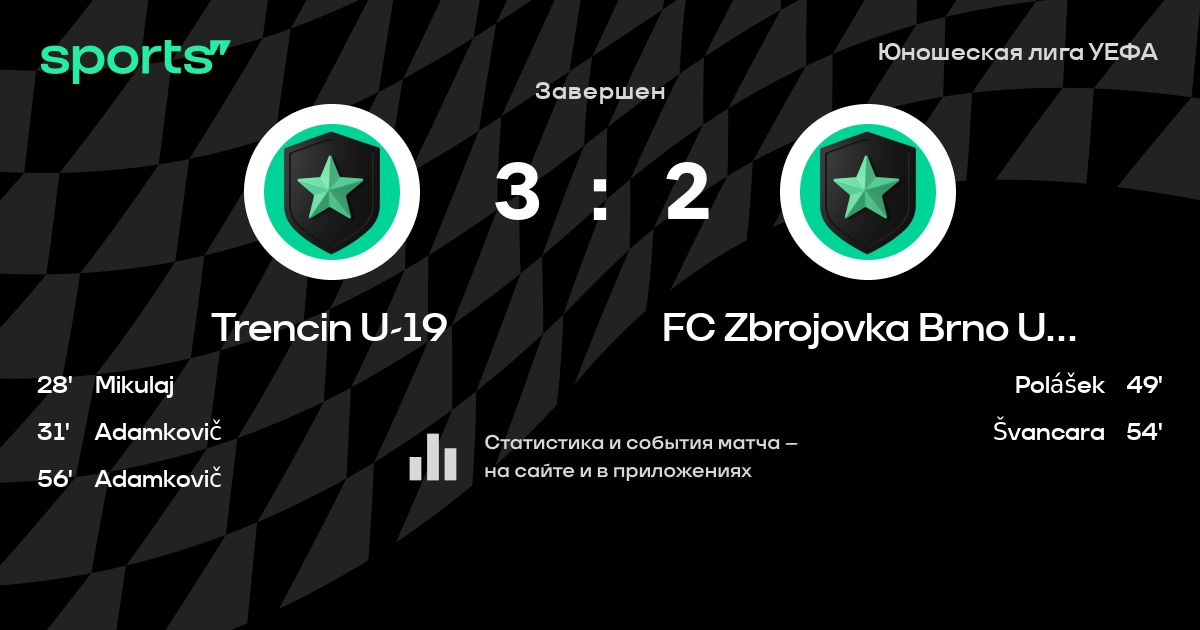 AS Trenčín Under 19 – FC Zbrojovka Brno Under 19: коэффициенты