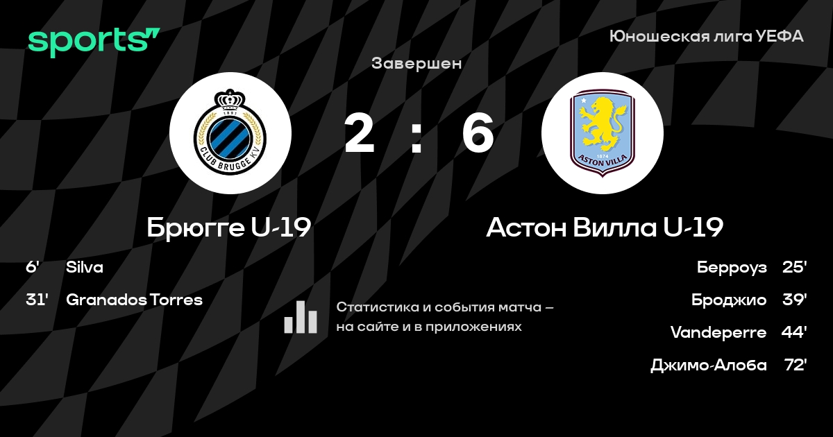 Трансляция Брюгге U-19 - Астон Вилла U-19