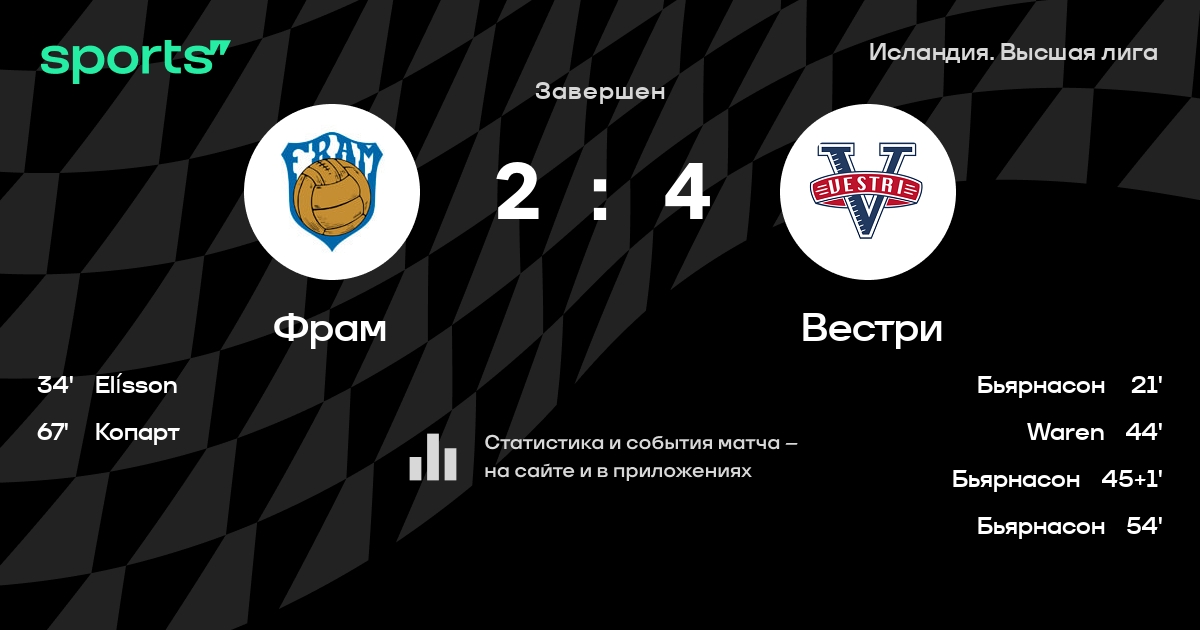 Олафссон - Ásgrímsson, Þorri Stefán Þorbjörnsson, Копарт, Арнарсон, Elisson - Fernandes, Гейрссон, Bello Saraiva - Markús Páll Ellertsson, MagnussonЗапасные: Hannesson, Gudmundsson, Andrason, Dahl, Sigurðsson, Daniels, Þórðarson