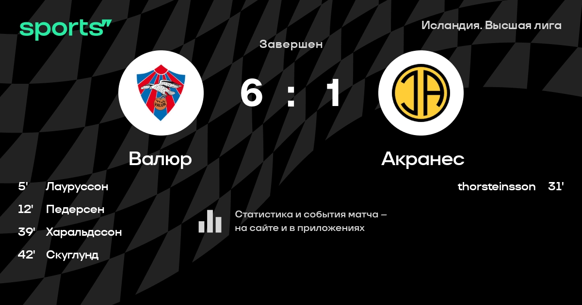 Einarsson - Валль, Stefansson, Сандберг, Jónsson, Гисласон - Haukur Andri Haraldsson, Leósson, Thorsteinsson - Jónsson, Hinrik HarðarsonЗапасные: Стейнарссон, Hjörleifsson, Heimisson, Hermannsson, Hilmarsson, Сигурдссон, Смарасон