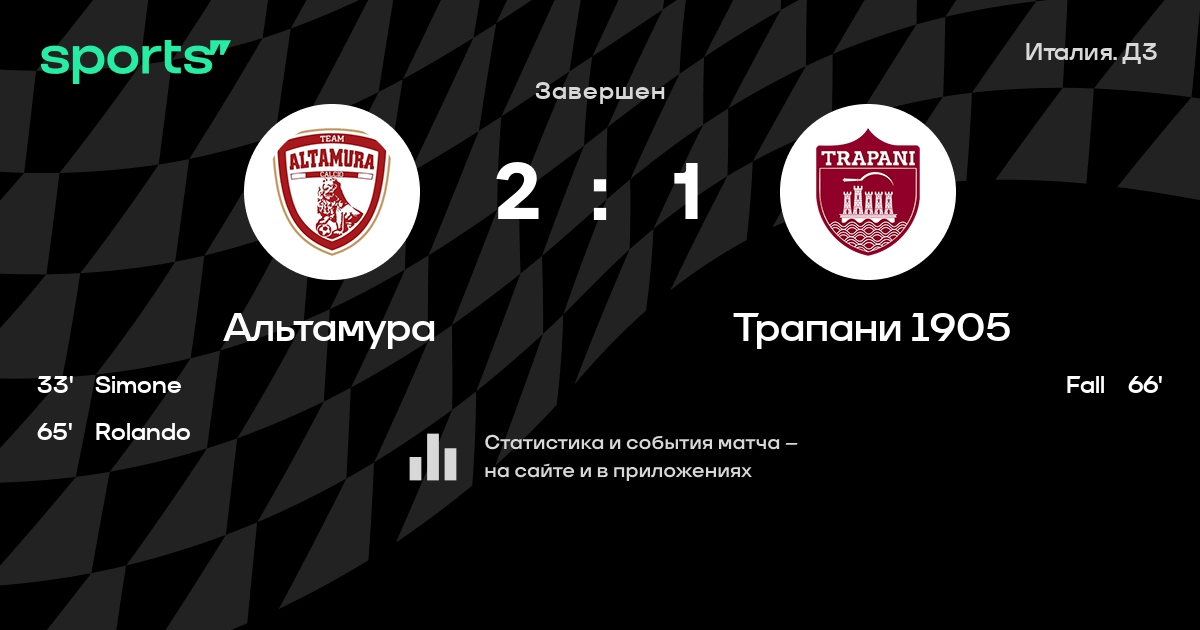 Результат прошлой игры в турнире «Серия С»: Trapani 1905 – Латина 4:0. После 16 туров Trapani 1905 набирает 24 очков и занимает 8 место в турнире. Лучший бомбардир команды – Факундо Лескано: он забил 13 в 16 матчах. В 12 последних матчах в турнире «Серия С» Trapani 1905 обязательно забивает. В последних 5 играх Trapani 1905 забивает 12 голов. В последних 5 играх Trapani 1905 пропускает 4 голов.
