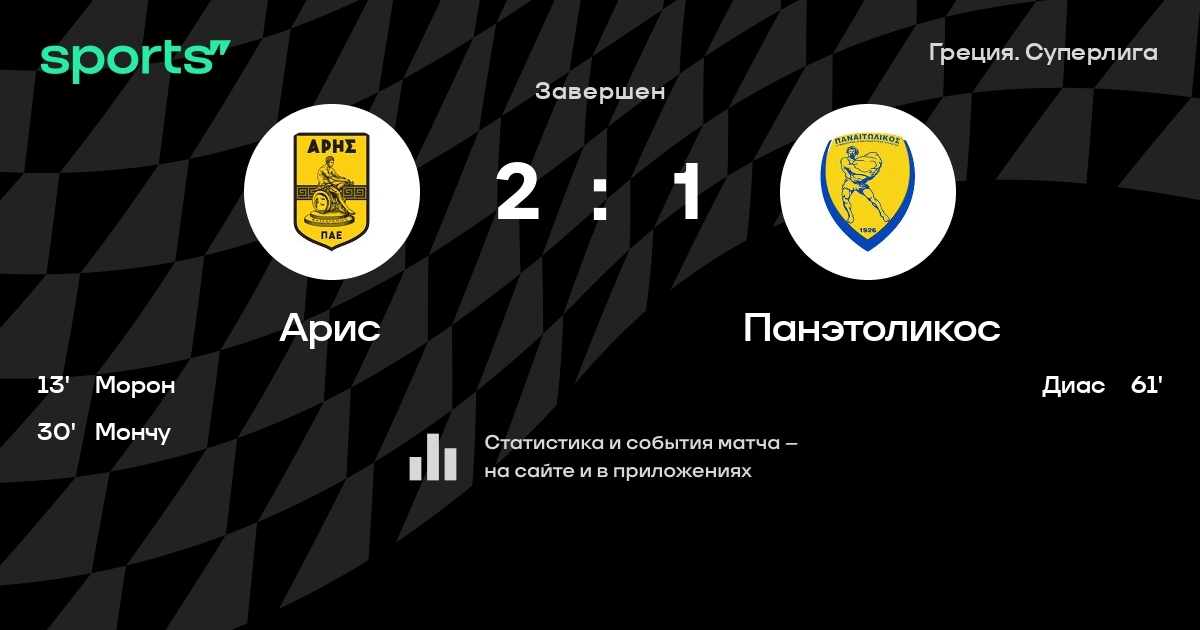 Арис – Панэтоликос: Арис не пропускает в 0 из 7 последних матчей против этого соперника