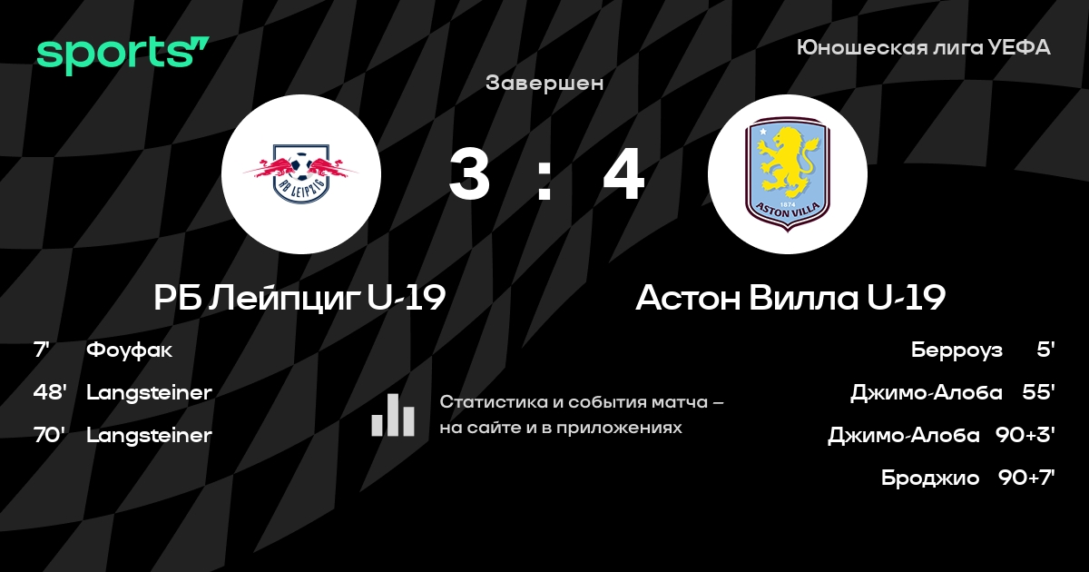 Трансляция РБ Лейпциг U-19 - Астон Вилла U-19