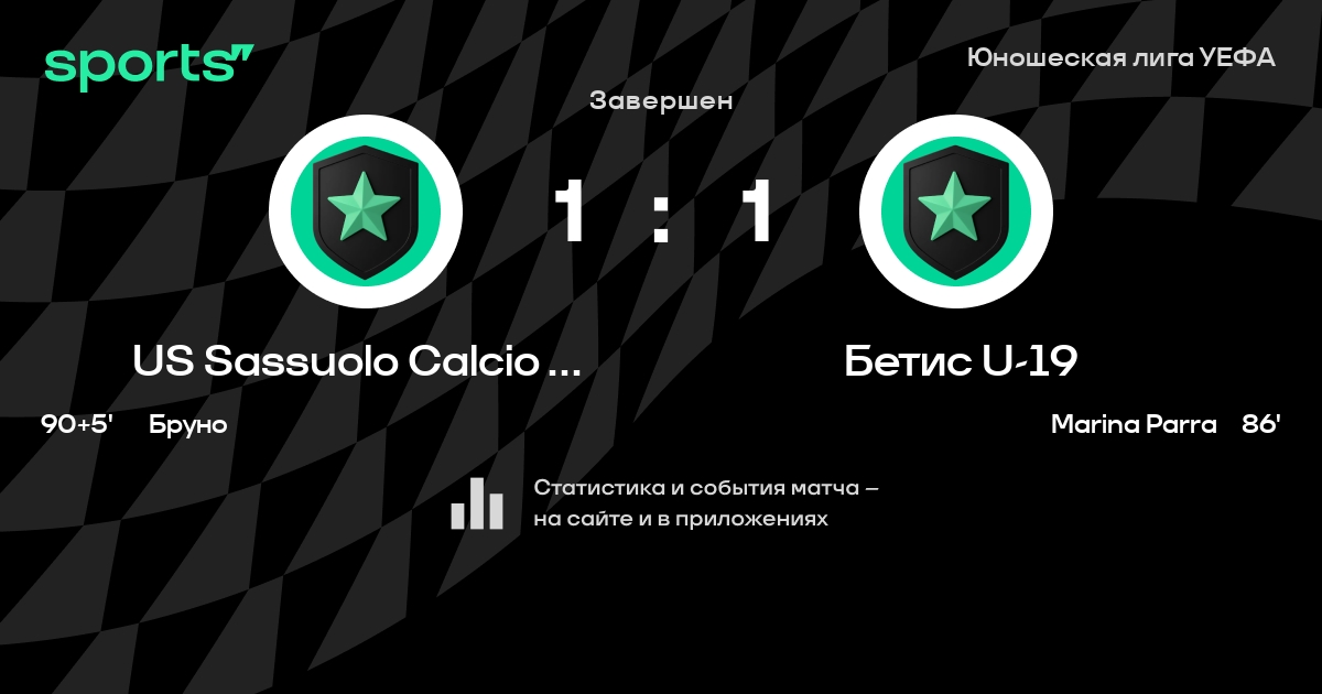 Трансляция US Sassuolo Calcio U19 - Бетис U-19
