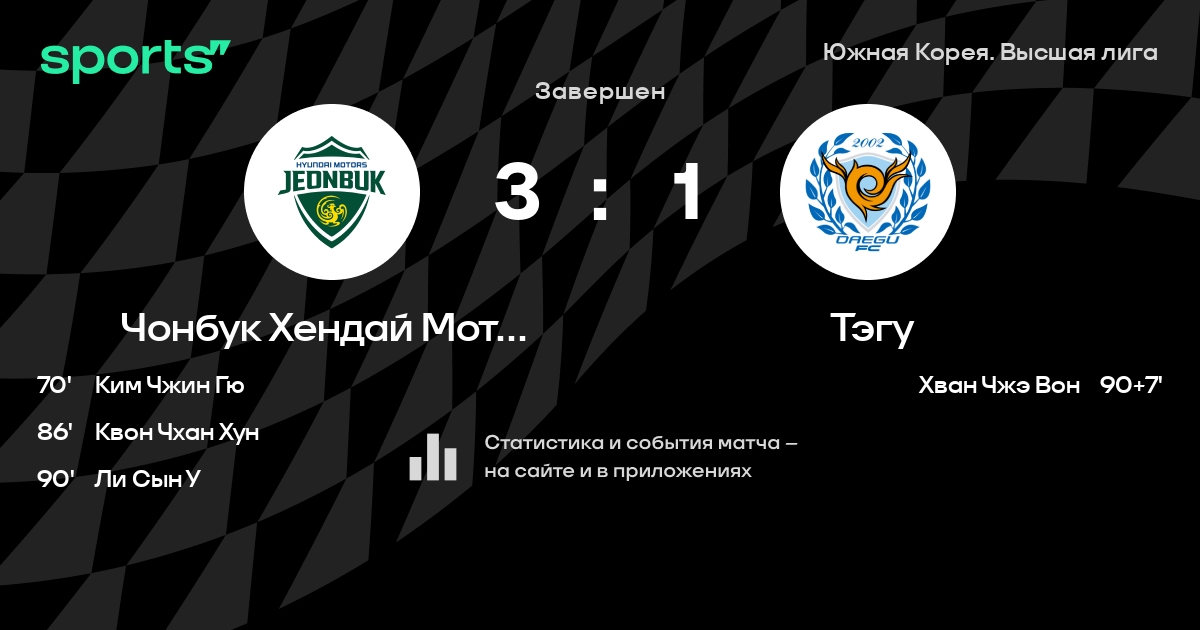 Чонбук Хендай Моторс – Тэгу: коэффициенты