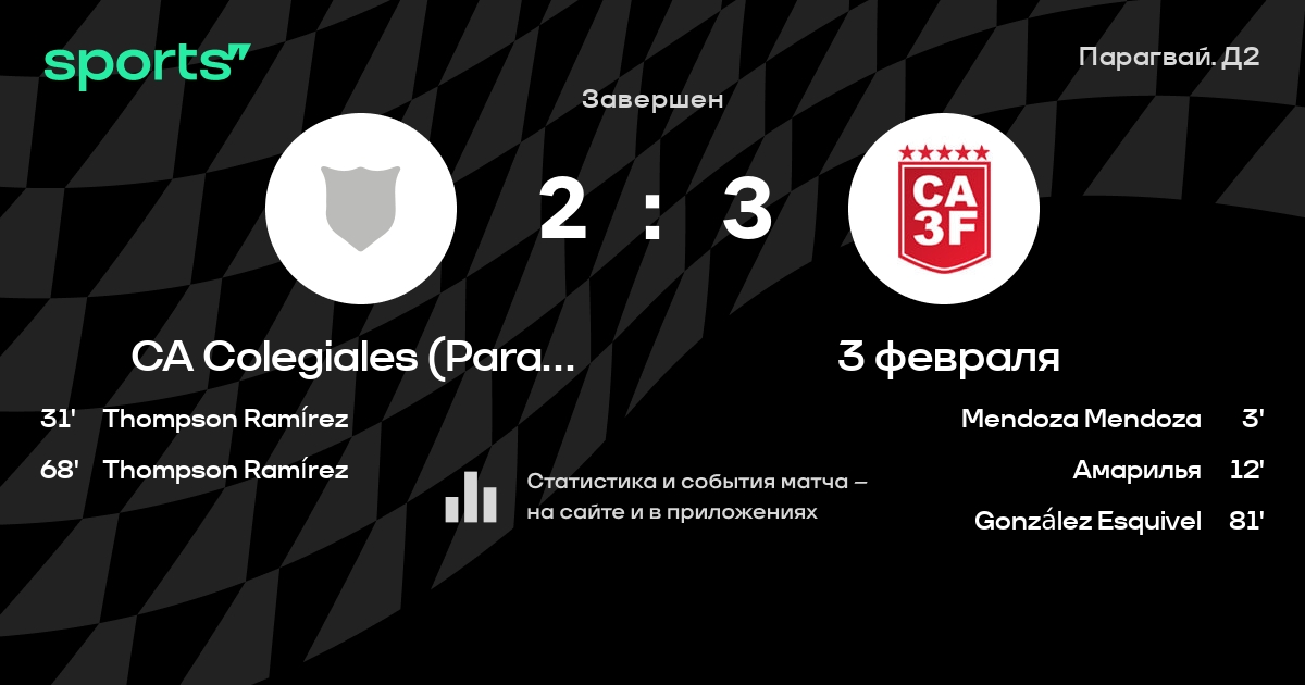 Трансляция CA Colegiales (Paraguay) - 3 февраля