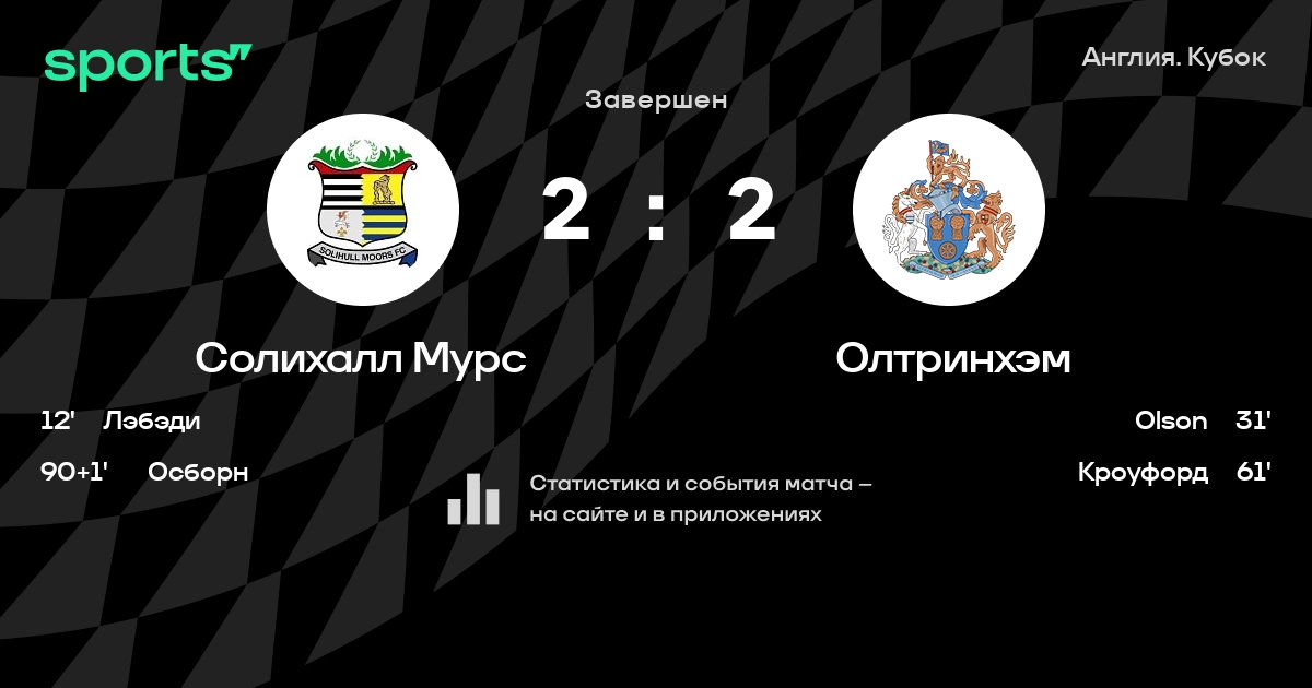 Результат прошлой игры в турнире «Кубок»: Олтринхэм – Солихалл Мурс 1:1. В последних 5 играх Солихалл Мурс забивает 7 голов. В последних 5 играх Солихалл Мурс пропускает 11 голов.