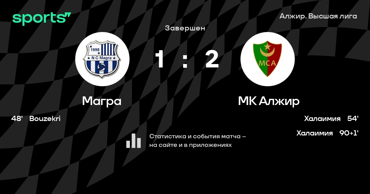 Результат прошлой игры в турнире «Лига 1»: Константина – Магра 0:0. После 14 туров Магра набирает 15 очков и занимает 12 место в турнире. Лучший бомбардир команды – M. Merouani: он забил 2 в 10 матчах. Магра не может выиграть в 3 последних матчах в рамках турнира «Лига 1». В последних 5 играх Магра забивает 6 голов. В последних 5 играх Магра пропускает 6 голов.