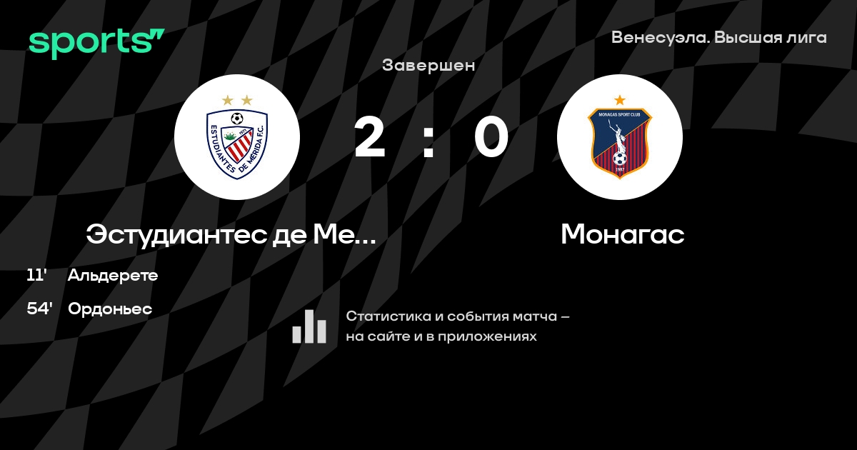 Результат прошлой игры в турнире «Примера»: Эстудиантес де Мерида – Депортиво Ла-Гуайра 0:1. После 13 туров Эстудиантес де Мерида набирает 22 очков и занимает 4 место в турнире. Эстудиантес де Мерида проигрывает в 3 последних матчах в рамках турнира «Примера». Эстудиантес де Мерида пропускает в 3 последних матчах в турнире «Примера». В последних 5 играх Эстудиантес де Мерида забивает 3 голов. В последних 5 играх Эстудиантес де Мерида пропускает 6 голов.